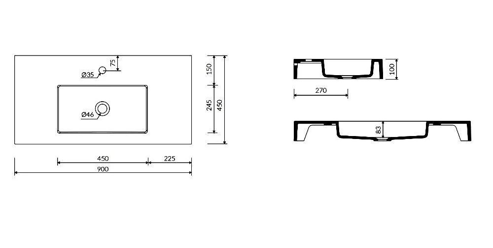 Раковина для ванної Marmorin Zoya 900 накладна з крилом литий камінь білий P_U_552_03_0900