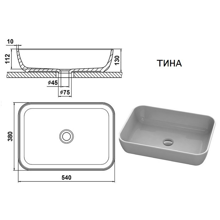 1) Раковина для ванної Marsan Тіна 54х38 накладна білий матовий