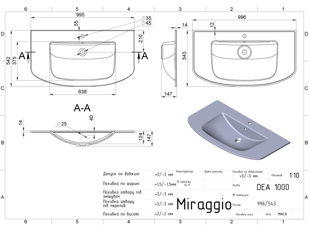 MIRAGGIO – український бренд, який понад 10 років спеціалізується на виготовленні сантехніки з литого мармуру. Компанія має власне виробництво у м. Дніпро. Для виробництва сантехніки використовуємо обладнання, розроблене нашими інженерами. Прилади та форми MIRAGGIO не мають аналогів у світі. Важливо, що кожна форма має дублікат, що гарантує безперервний процес виробництва умивальників і ванн.