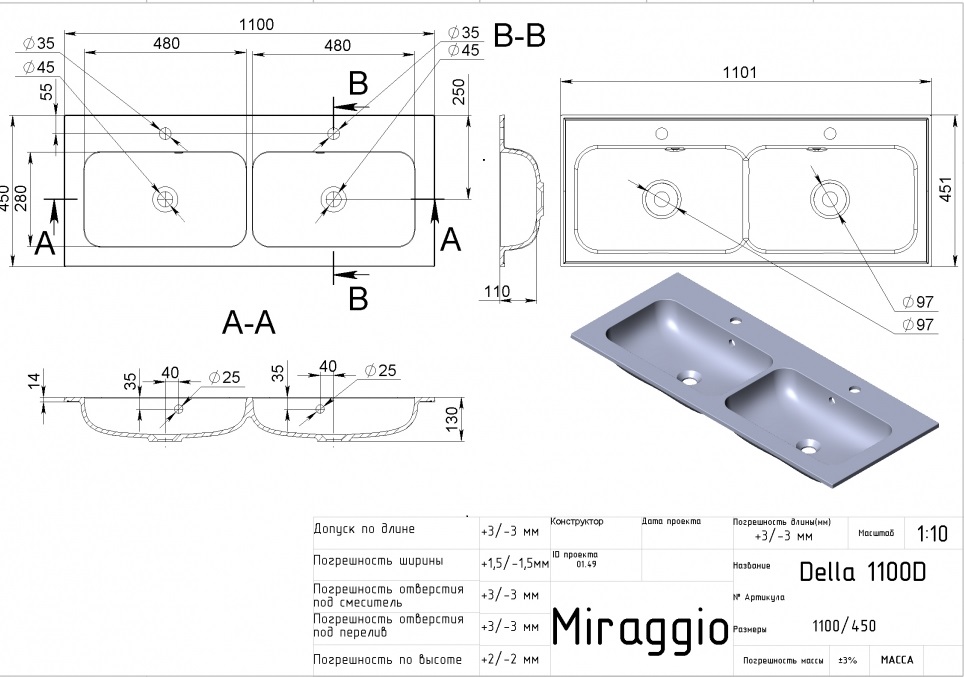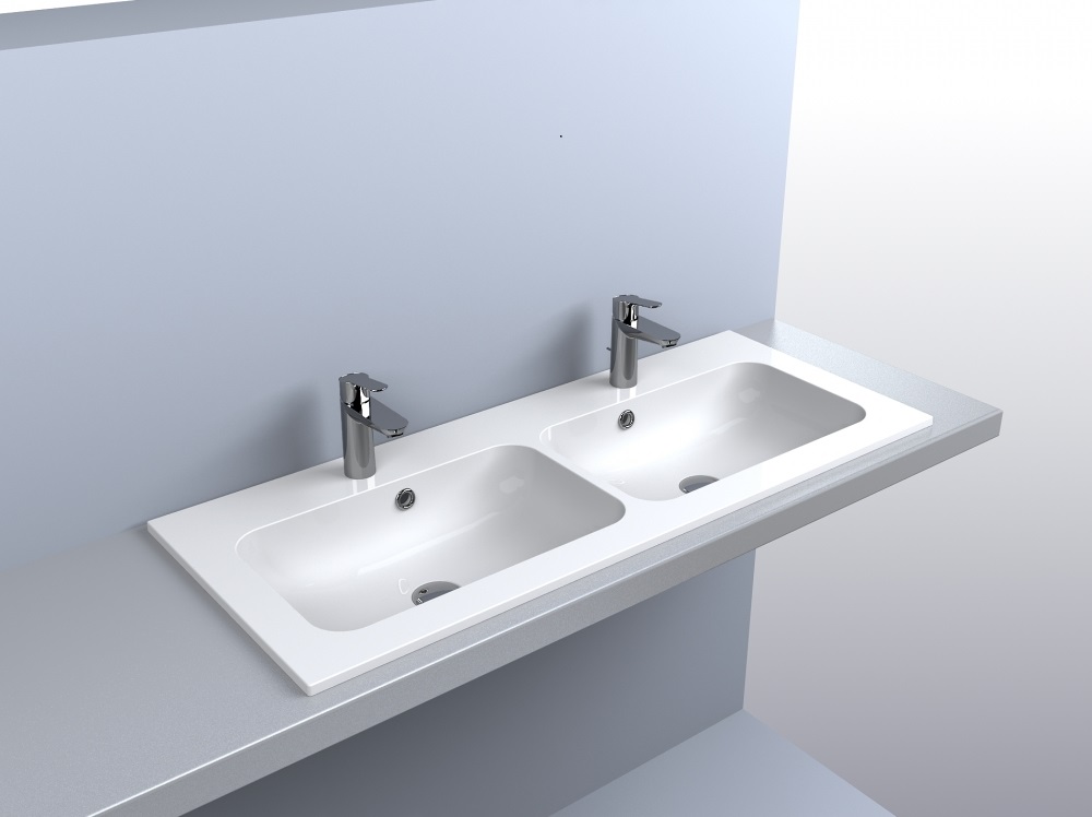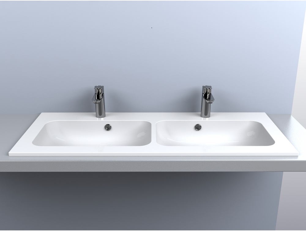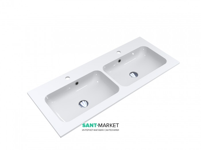 Раковина для ванної Miraggio Della 1100-2 врізна подвійна з отворами під змішувач білий глянсовий