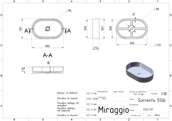 Раковина для ванної Miraggio Sorrento 55х35,1 см см Mirasoft Technology білий матовий