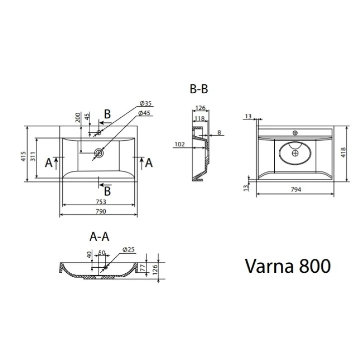 1) Раковина для ванної Radaway Varna 80 79х41,5 см штучний камінь білий