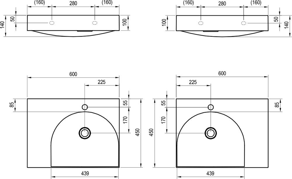 мийка для ванної кімнати Ravak Lite 60x45 см R з отвором для відкривання білого кольору