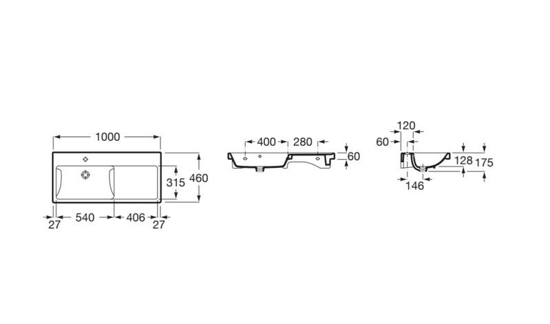 Раковина для ванної Roca Gap 100х46 см чаша ліворуч сантехнічна кераміка білий A3270MB004