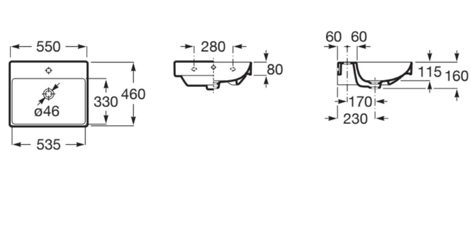 Роковина для ванної Roca Ona 55х46 см Fineceramic® білий