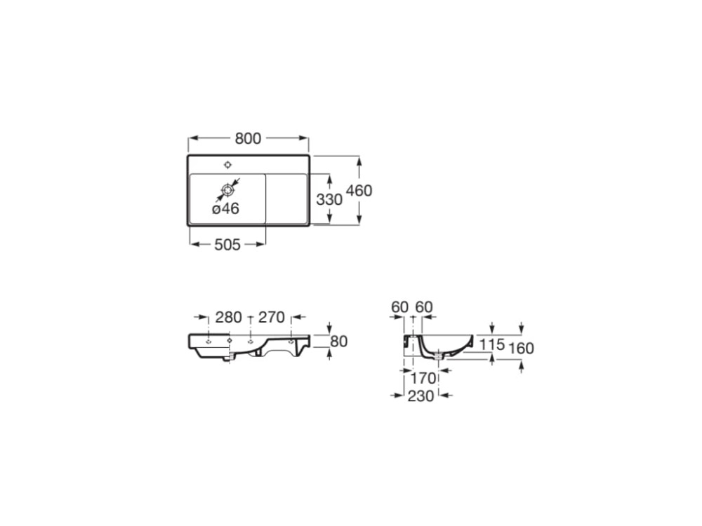 Раковина для ванної Roca Ona 80х46 см чаша зліва Fineceramic® білий A327689004
