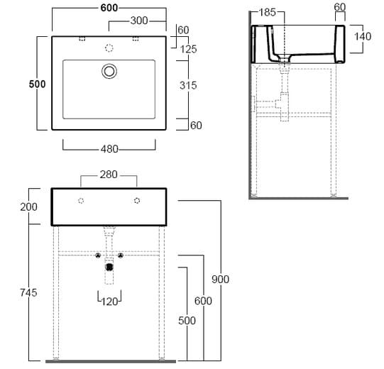 1) Раковина для ванної Simas Frozen підвісна / накладна 60х50 см фаянс білий
