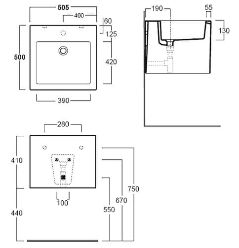 - Отвір під змішувач: з 1 наміченим отвором