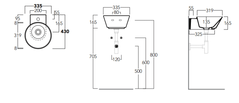 1) Раковина для ванної Simas Wave накладна / підвісна 33,5х43 см фаянс білий