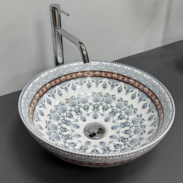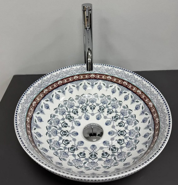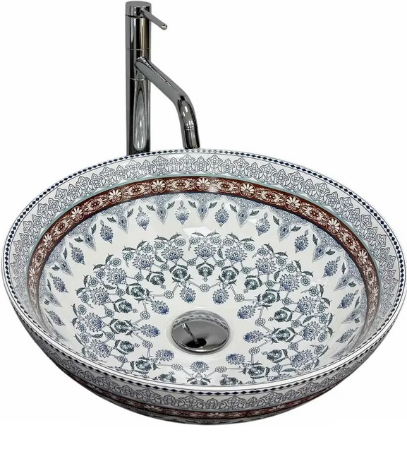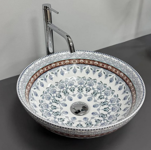 Раковина для ванної VBI Arcile ⌀40 см кераміка синій візерунок VBI-016102