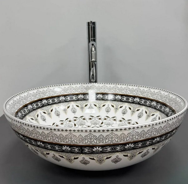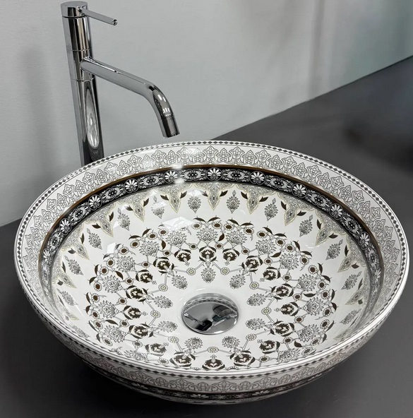 Раковина для ванної VBI Arcile ⌀40 см кераміка сірий візерунок VBI-016103