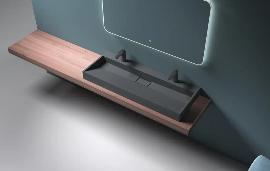 Раковина для ванної VBI Este 120х46 см штучний камінь чорний VBI-019930