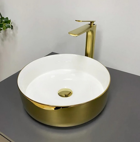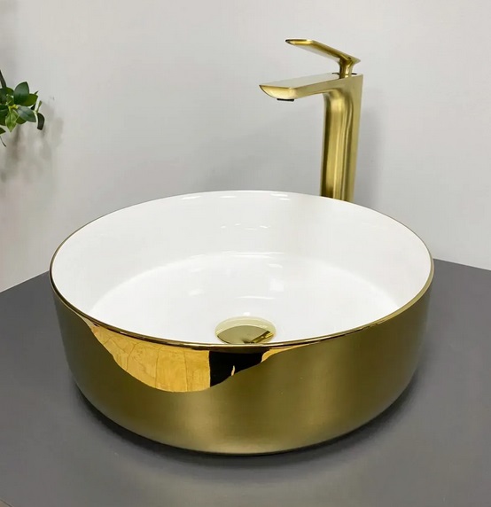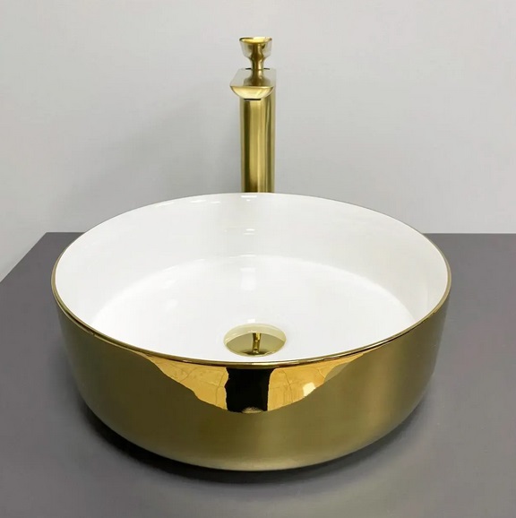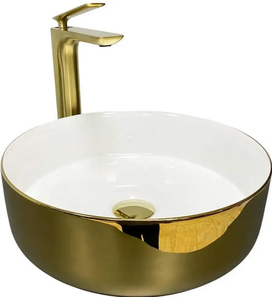 Раковина для ванної VBI Prato ⌀36 см кераміка золото/білий VBI-011415
