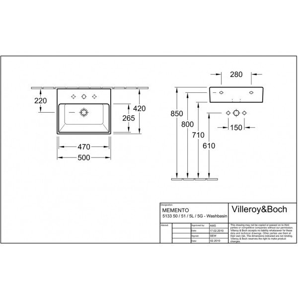 Роковина для ванної Villeroy & Boch Memento 50х42 см санітарна кераміка CeramicPlus альпійський білий