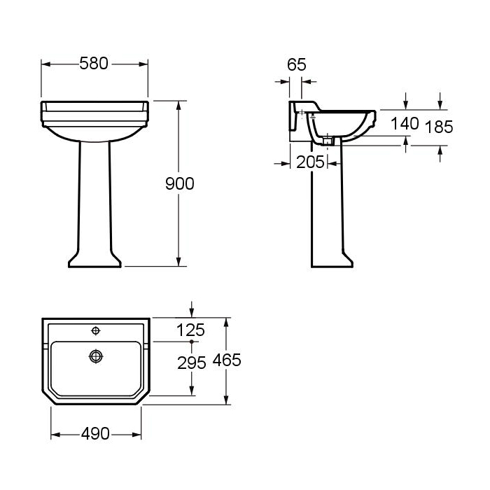 Раковина для ванної Volle Don Grandes 58х46.5 см з п'єдесталом кераміка білий