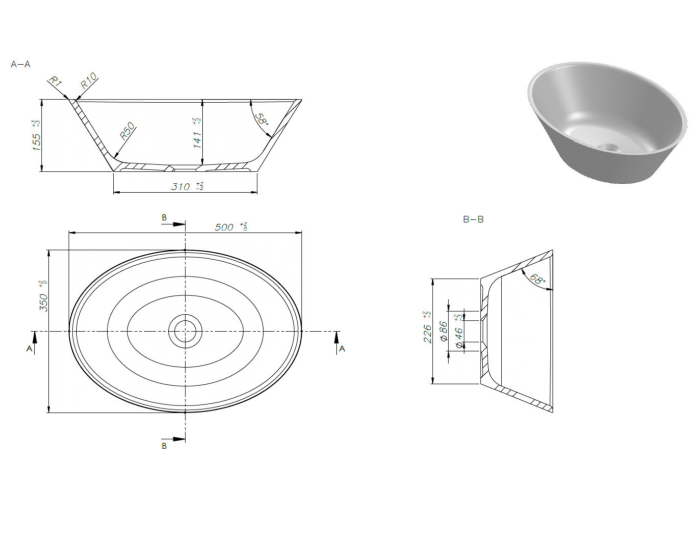 Раковина для ванной Marmorin Luka накладная без крыла литой камень белый P_U_263_02_0500