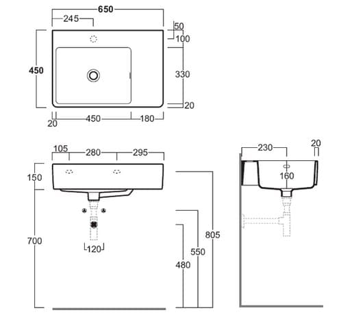1) Раковина для ванної Simas Quasar підвісна 65х45 см фаянс білий