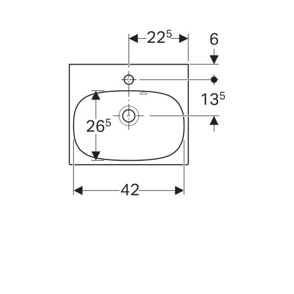 - Отвір для змішувача: по центру