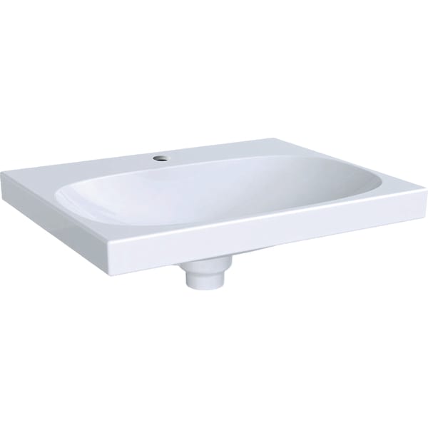 Раковина Geberit Acanto 60 см з прихованим переливом і пробкою зливного отвору санфарфор білий 500.629.01.2