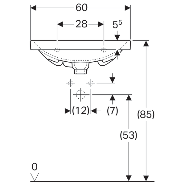1) Раковина Geberit Acanto з укороченим вильотом санфарфор білий