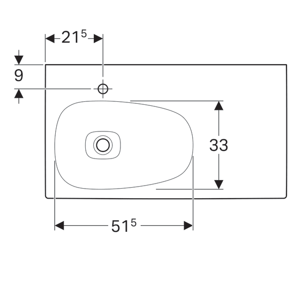 Раковина Geberit Citterio 90 см з полицею справа санфарфор білий / спеціальне керамічне покриття KeraTect