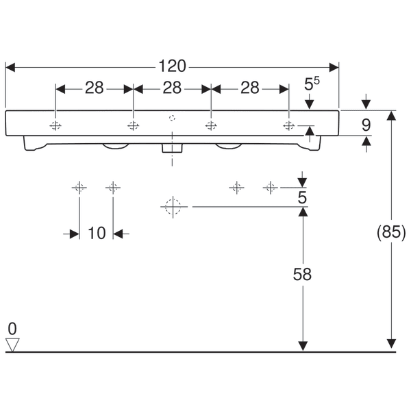 Раковина Geberit iCon 120 см отвір для змішувача справа і зліва перелив санфарфор білий