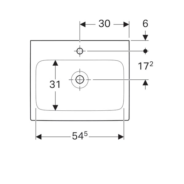 Раковина Geberit iCon 60 см отвір для змішувача без переливу санфарфор білий