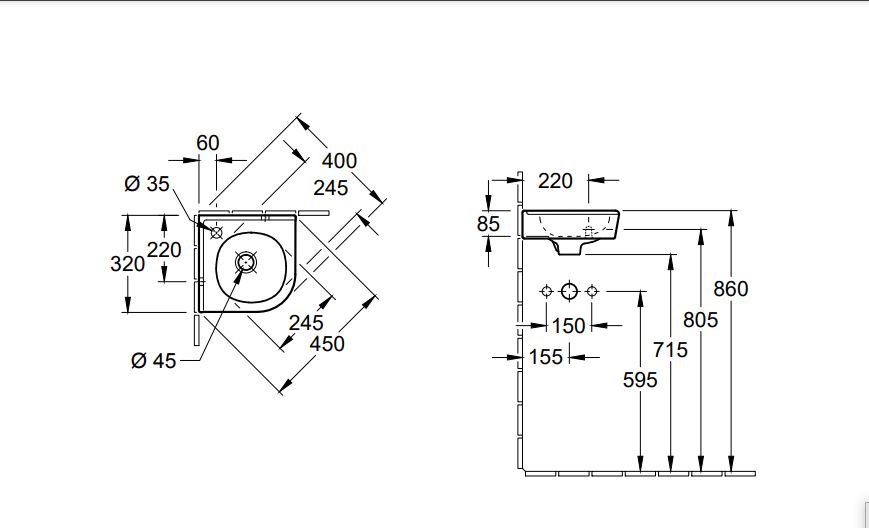 Раковина кутова Villeroy & Boch O.novo 40х32 см санітарна кераміка альпійський білий 73103301