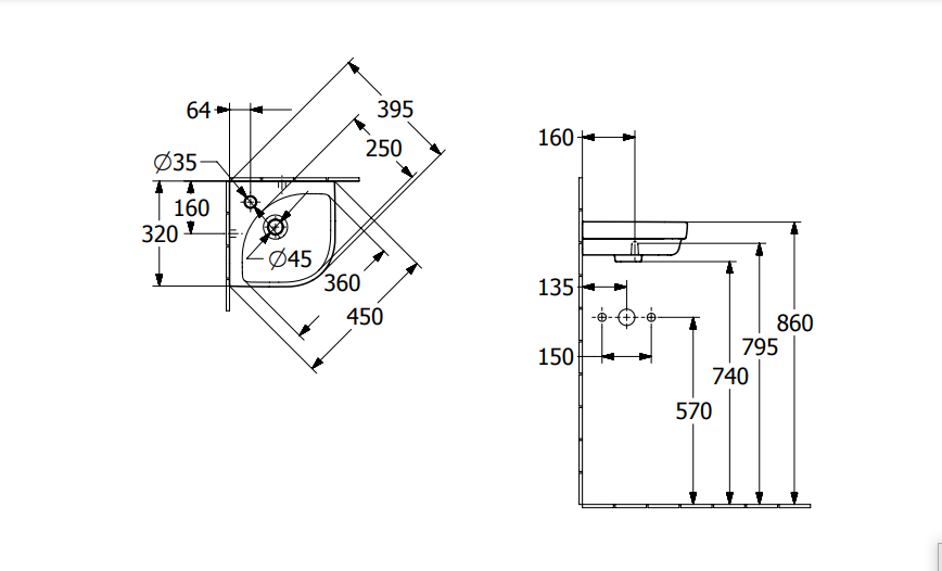 Раковина кутова Villeroy & Boch Subway 3.0 32х32 см санітарна кераміка альпійський білий 43714601