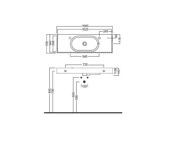 1) Раковина підвісна Hatria Area 106х35.5 см санфарфор білий