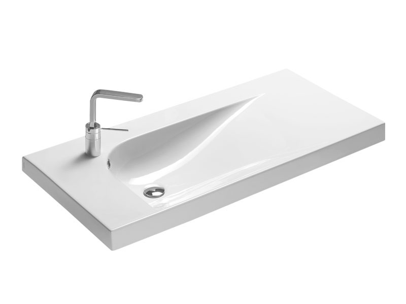 Раковина підвісна HATRIA GRANDANGOLO YXF701 , з одним отвором для змішувача (намічено ще 2 отвори), з переливом, розмір 100х50 см, колір білий. Установка підвісна або на тумбу. Кріплення, донний клапан і сифон можна придбати окремо. Додатково можливо укомплектувати полотенцедержателем.