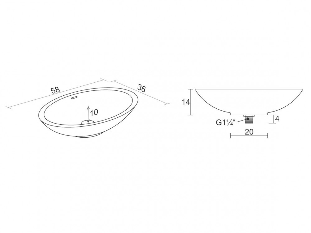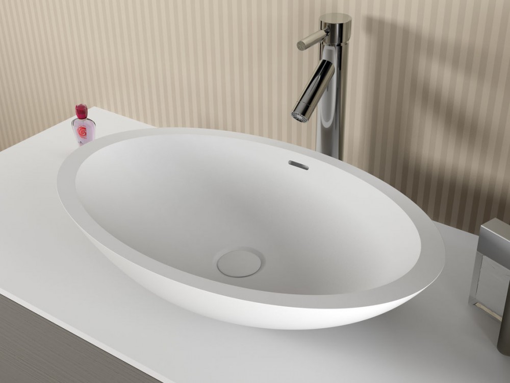 1) Раковина Riho Avella 58х36 см штучний камінь білий матовий