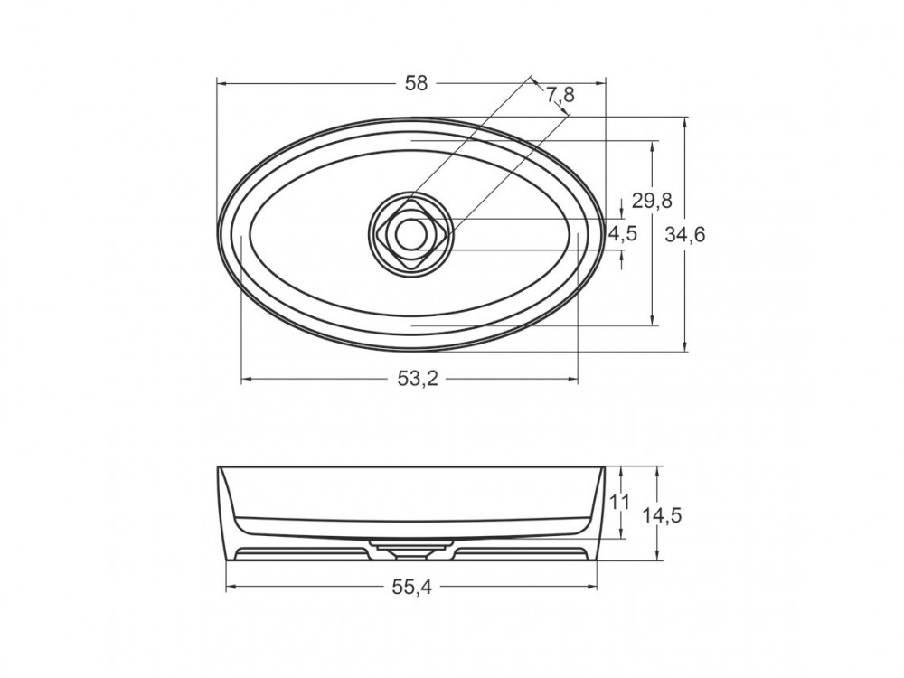 1) Раковина Riho Thin Oval 58х34,6 см штучний камінь білий матовий