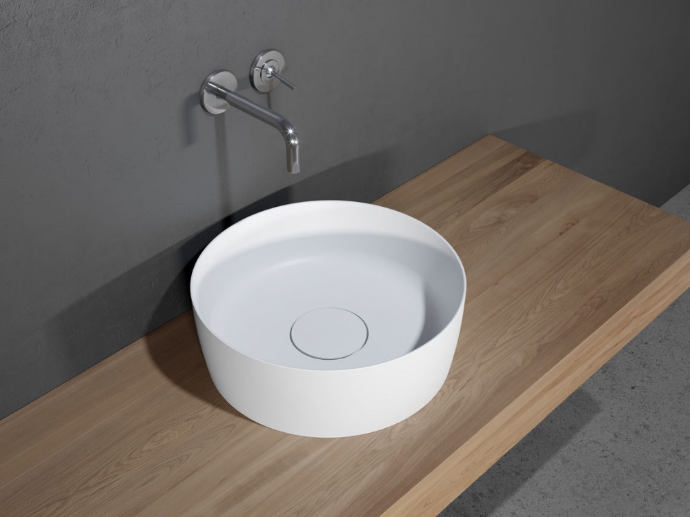 1) Раковина Riho Thin Round Ø41,8 см штучний камінь білий матовий