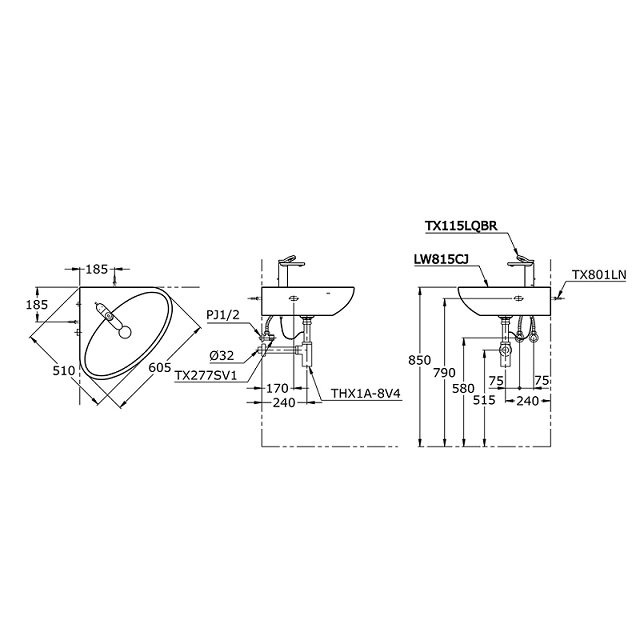 1) Раковина TOTO Le Muse кутова кераміка білий