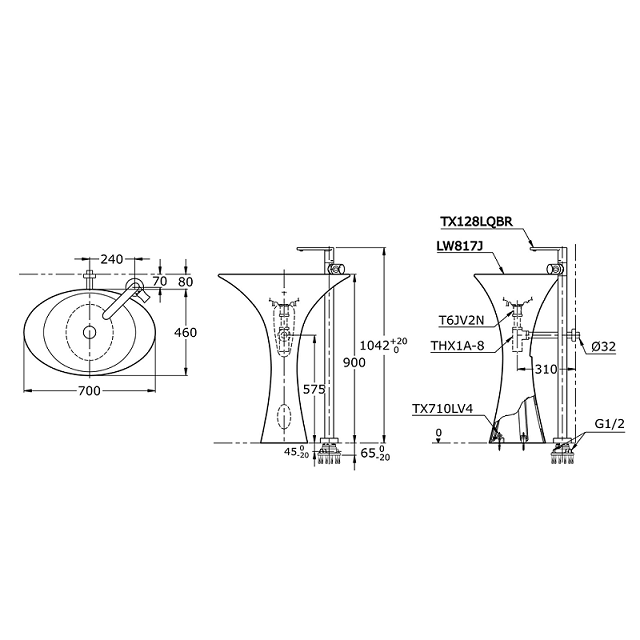 Раковина TOTO Le Muse підлогова овальна кераміка білий LW817J
