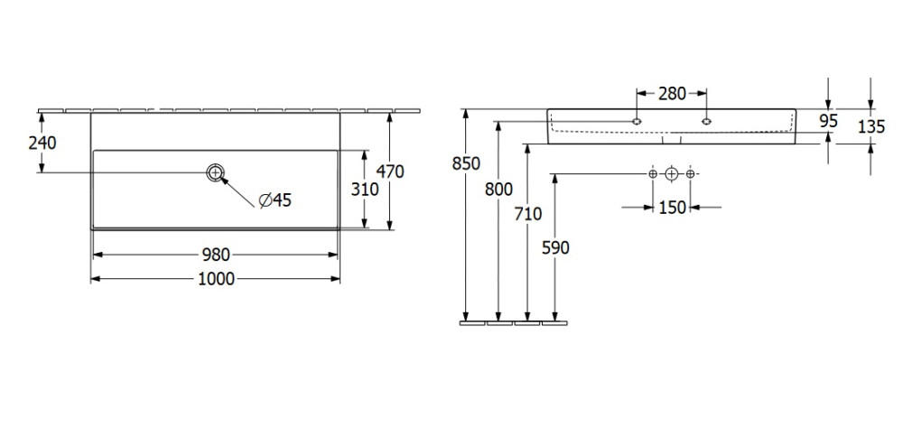 Раковина Villeroy & Boch Memento 2.0 100х47 см без переливу TitanCeram CeramicPlus графіт 4A22A3I4