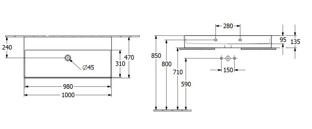 Роковина Villeroy & Boch Memento 2.0 100х47 см без переливу шліфована TitanCeram CeramicPlus Ebony (чорний матовий)