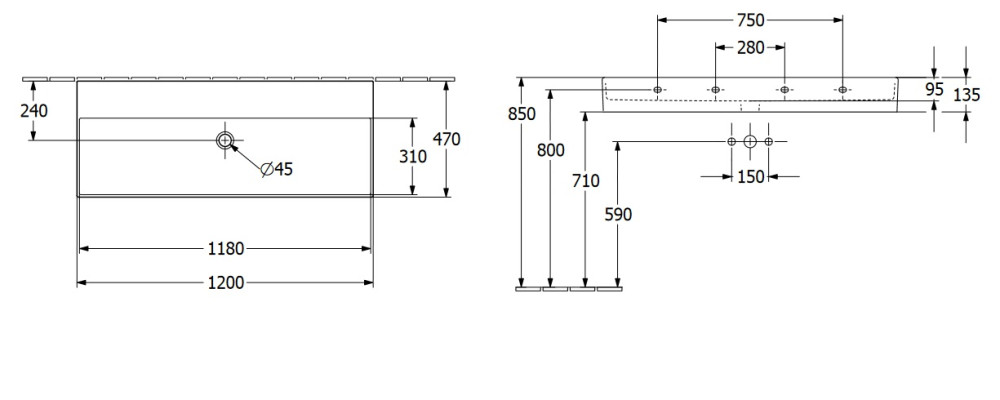Раковина Villeroy&Boch Memento 2.0 120х47 см без переливу TitanCeram альпійський білий 4A22C301
