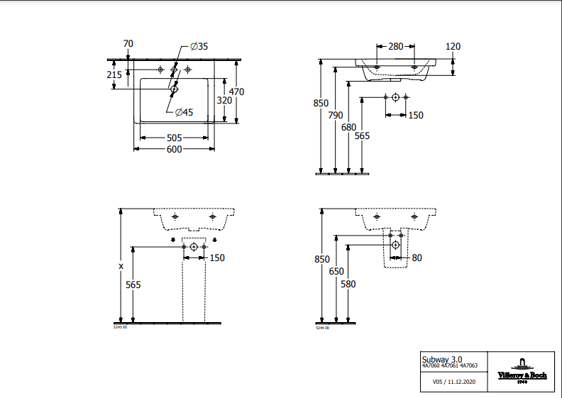 Роковина Subway 3.0 Villeroy & Boch задає у ванній кімнаті стильний акцент і в теж час практична та функціональна. У широкому асортименті раковин представлені різні моделі на тумбу або стільницю з високоякісного матеріалу TitanCeram. Дуже тонкі стінки привносять в інтер'єр ванної легкість, а характерний дизайнерський кант служить додатковим захистом від бризок та перекидання.