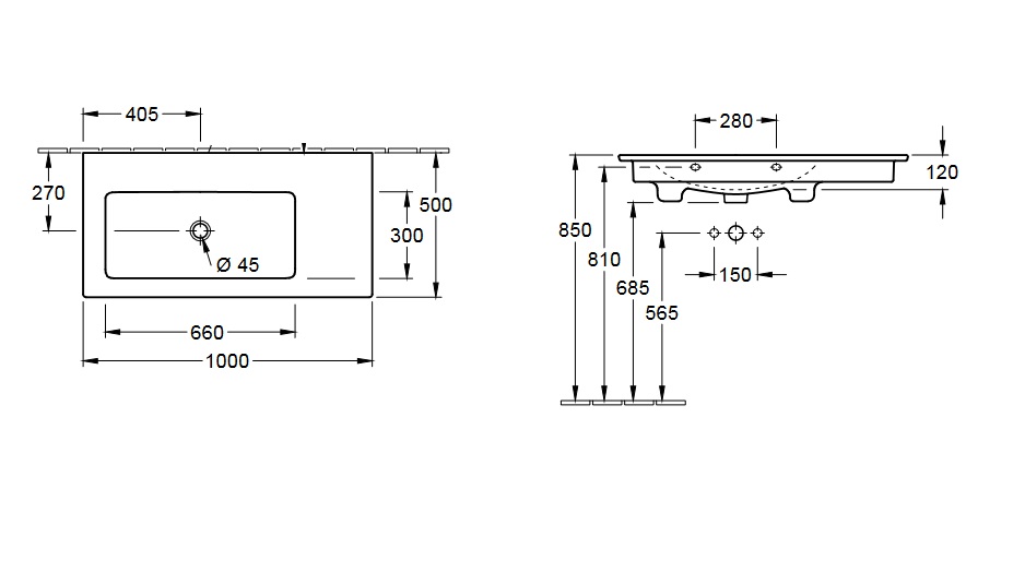 Роковина Villeroy & Boch Venticello 100х50 см чаша ліворуч санітарна кераміка альпійський білий