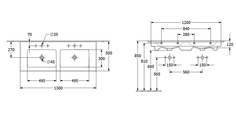 Роковина Villeroy & Boch Venticello подвійна 130х50 см з переливом санітарна кераміка CeramicPlus альпійський білий