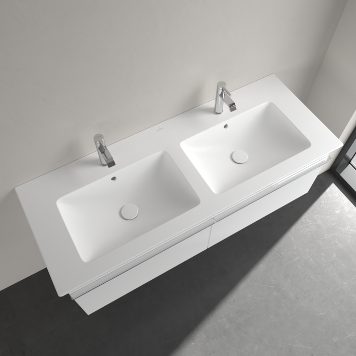 Роковина Villeroy & Boch Venticello подвійна 130х50 см з переливом санітарна кераміка CeramicPlus кам'яний білий