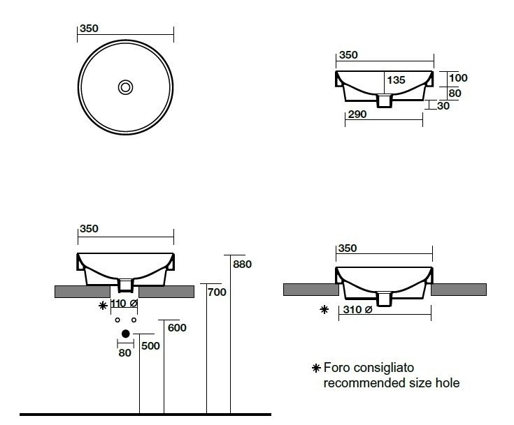 - розміри раковини: 350х350х180 мм