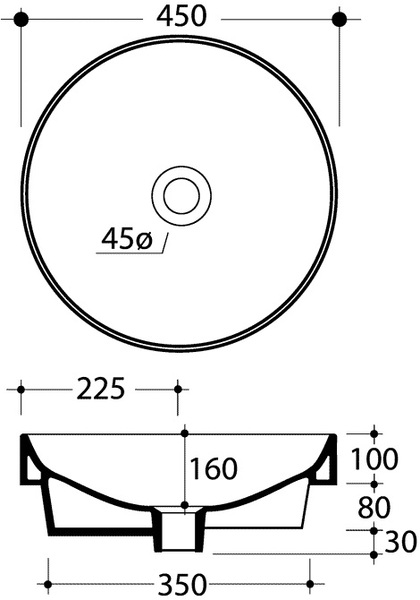 - розміри раковини: 450х450х180 мм