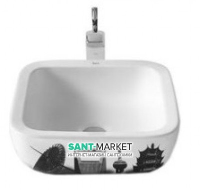 1) Раковина-чаша для ванної накладна Roca Urban 40х40 см із зовнішнім декором Shanghai кераміка біла