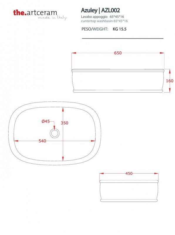 - Може комплектуватися: з консоллю Artceram арт. AZA003 71 03 і AZA003 71 01