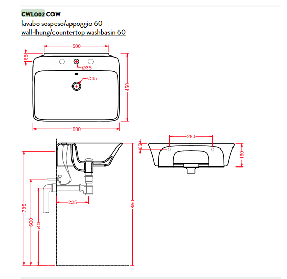 - Може комплектуватися полотенцедержателем CWA003 (замовляється окремо)