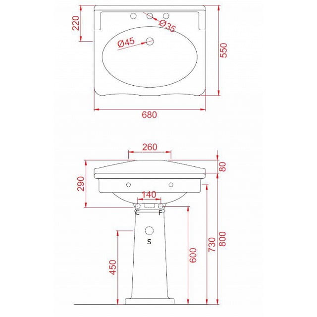 - Установка на стіну або на колону HEC002 03; 00 (замовлятидодатково, в комплект не входить), а також з консоллю HEA015 71/72/73 з ногами хром / бронза / золото.