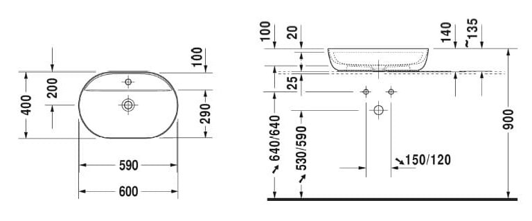 1) Раковина для ванної Duravit Luv 60х40 см кераміка білий Alpin